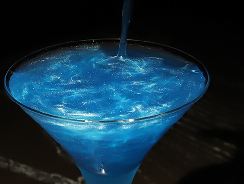 鮮やかなブルーの8周年限定オリジナルカクテル「No.8」の水面の美しさを思わせる華やかでフルーティーな味わいのカクテルをご堪能ください。